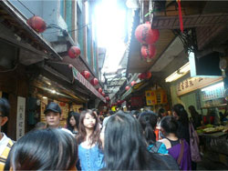 台北市内から車で約1時間の郊外にある「九ヒン」という観光スポット。狭い路地にお店がひしめき合っています。たくさんの提灯がノスタルジック・・・