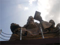三国志の英雄「関羽」を祀っているお寺。お寺の屋根の上、本を広げる関羽像はまさに文武両道の軍神!ビッグな関羽の石像は三国志ファン必見