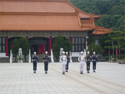 「忠烈祠」では衛兵の交代式が見られます。衛兵のぴったり揃った行進の動きもすごいが、門衛が逆に1時間くらい全く動かない、というのもすごいです。