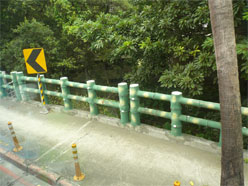 竹の形のガードレール。竹は台湾で出世の意味があり、みんなに好かれている植物だそうです。街のあちこちにこんな可愛いガードレールがあります。