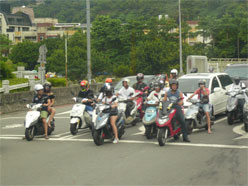 暴走族ではありません。普通の通勤風景と思われます。台湾ではバイクが交通手段でよく使われていてバイクショップも多いです。二人乗りもOK!