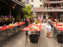 台湾の人は、日常でよくお寺へ参拝に行きます。参拝の方法もいろいろ規則があって、右門から入り、左門へと出るそうです。(邪気を祓うため)